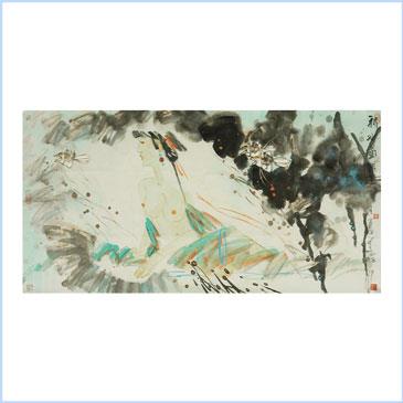 张亮京《观荷》扇面