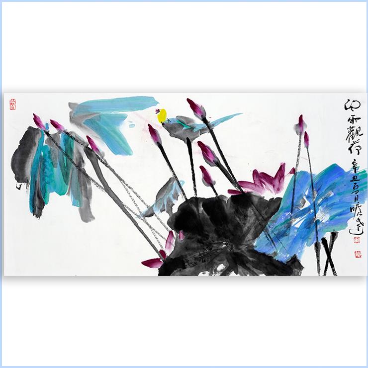 张亮京《观荷》扇面